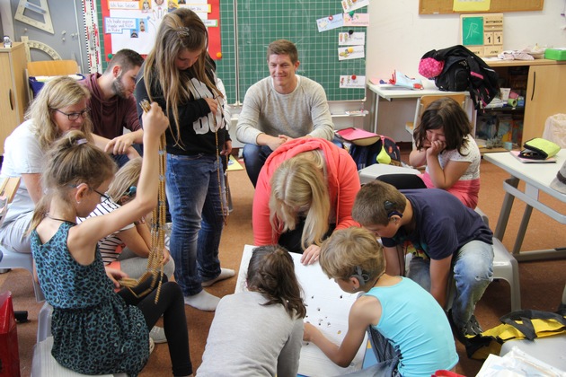Münster, 13. Juli 2017. Die Auszubildenden der Westfälischen Provinzial Versicherung überreichten 1.000 Euro an die Regenbogenschule. Die Münsterlandschule profitiert ebenfalls von dem Engagement und schafft neue Unterrichtsmaterialien im Wert von 300 Euro an. Seit vielen Jahren organisiert das erste Lehrjahr der Provinzial ein soziales Projekt. "In unserer Ausbildung ist soziales Engagement ein fester Bestandteil. Dadurch lernen die Auszubildenden Verantwortung zu übernehmen und erweitern ihre soziale Kompetenz", sagt die Generalbevollmächtigte Personal Beatrice von Brauchitsch. Dieses Mal planten sie dafür schon im November. Die Azubis organisierten einen Nikolausverkauf an Kollegen, bei dem rund 2.000 Euro zusammenkamen. 1.000 Euro überreichten sie in Form einer Geldspende am Dienstag an die Regenbogenschule. Auch eine Projektwoche im April wurde von diesem Geld finanziert. Dabei lernten die Auszubildenden die Schüler bei gemeinsamen Aktionen näher kennen. Backen, Basteln und ein Besuch der Feuerwehr ließen die Hemmschwelle schnell sinken. Die Münsterlandschule hingegen hatte ein Anliegen das mit dem Geld bereits verwirklicht wurde: Neue Unterrichtmaterialien, wie ein Europapuzzle und Rechenketten. Für die Regenbogenschule steht der Verwendungszweck des Geldes auch schon fest: Rund 100 Schüler der Grundstufe werden nach den Sommerferien einen Ausflug zum Planetarium machen. "Da der Transport unserer Schüler ein großer Aufwand ist, freuen wir uns besonders über die Spende der Provinzial", so Stufenleitung Monika Aschemann. Die Auszubildenden werden bei dem Ausflug auch wieder dabei sein.
