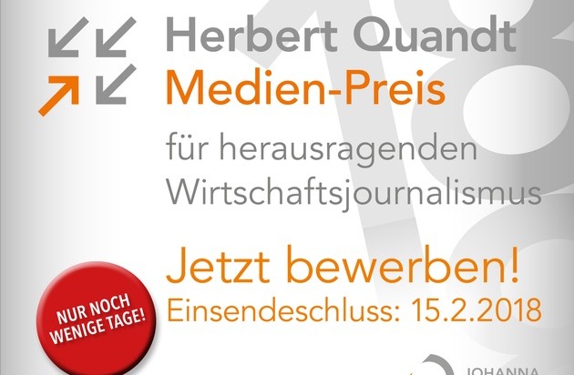 Jetzt bewerben für den Herbert Quandt Medien-Preis 2018 für herausragenden Wirtschaftsjournalismus!