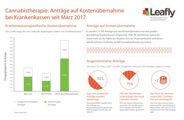 "Im Schnitt werden 61 Prozent der Anträge auf Kostenübernahme genehmigt - insgesamt wurden 13.593 Anträge gestellt. Damit ist die Genehmigungsquote im Vergleich zum letzten Sommer gestiegen, damals wurden weniger als 50 Prozent der gestellten Anträge genehmigt. Da der Verband der Privaten Krankenkassen (PKV) solche Daten nicht erhebt, kann hier kein Vergleich gezogen werden - die Privatpatienten erhöhen die Zahl der eingegangenen Anträge entsprechend", erklärt Sandrina Kömm-Benson, Chefredakteurin von Leafly.de.