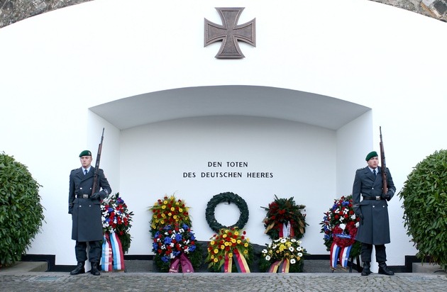 Am Ehrenmal des Deutschen Heeres auf der Festung Ehrenbreitstein in Koblenz gedenkt das Deutsche Heer am Donnerstag, den 23. November 2017, der Opfer von Krieg, Verfolgung und Gewaltherrschaft, den gefallenen Soldaten beider Weltkriege sowie den im Einsatz gefallenen und in der Ausübung ihres Dienstes ums Leben gekommenen Soldatinnen und Soldaten des Deutschen Heeres. Die Gedenkansprache hält der Ministerpräsident a.D. von Rheinland-Pfalz und Thüringen, Prof. Dr. Bernhard Vogel. Die Gedenkfeier ist eine gemeinsame Veranstaltung des Inspekteurs des Heeres, Generalleutnant Jörg Vollmer, und des Präsidenten des Kuratoriums Ehrenmal des Deutschen Heeres e.V., Generalleutnant a.D. Hans-Otto Budde. Vertreter des öffentlichen Lebens, Vertreter von ausländischen, in der Bundesrepublik Deutschland stationierten Streitkräften, der Freundeskreise der aktiven und ehemaligen Truppengattungen des Heeres sowie Interessenvertretungen, werden Kränze am Ehrenmal niederlegen. Das Heeresmusikkorps Koblenz wird die Feierstunde musikalisch begleiten. Termin: Donnerstag, 23. November 2017, ab 14:00 Uhr Es handelt sich um eine nicht-öffentliche Veranstaltung. Zu der Veranstaltung sind Medienvertreter herzlich eingeladen. Ort: Haupteingang Festung Ehrenbreitstein "Ticketschalter Festungseingang" Hier ist auch der Parkplatz für die Medienvertreter. Eine spätere Akkreditierung ist nicht möglich. Bitte führen Sie Ihren Presseausweis oder Personalausweis mit. Ablauf: 14:00 Uhr Einweisung 14:30 Uhr Beginn der Veranstaltung ca.15:30 Uhr Ende Presseprogramm Anmeldung: Erforderlich mit beiliegendem Akkreditierungsformular bis Mittwoch, den 22. November 2017, 12:00 Uhr