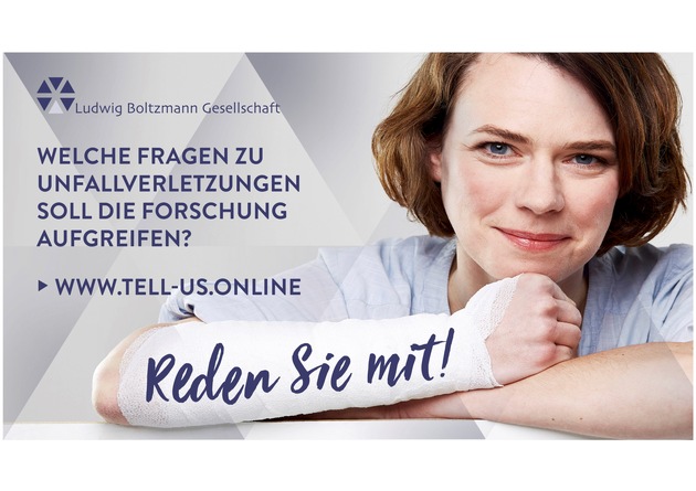 Lücke zwischen klinischer Anwendung und medizinscher Forschung.Was wäre, wenn ÄrztInnen, TherapeutInnen, Pflegepersonal und PatientInnen ihre täglichen Beobachtungen und Fragestellungen zu Unfallverletzungen ohne große Hürden in die Forschung einbringen könnten? Nach Schätzungen der Bundesanstalt für Arbeitsschutz und Arbeitsmedizin (BAuA) wurden in Deutschlands Krankenhäusern im vergangen Jahr mehr als 9,7 Mio Unfallverletzungen behandelt - hier entsteht ein wertvoller Wissensschatz. Die Ludwig Boltzmann Gesellschaft (LBG) gibt ExpertInnen und PatientInnen ein Sprachrohr, um ihr Wissen in die Forschung einzubringen. Ab 8. Mai können sie bei "Reden Sie mit!" über die Online-Plattform https://tell-us.online/de Fragen per Crowdsourcing einreichen. Im Rahmen von "Reden Sie mit!" wird der Citizen Science Award 2018 vergeben. TeilnehmerInnen haben die Chance auf 1 von 3 Sachpreisen.