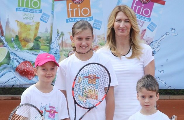 Die deutsche Tennis-Ikone heute zu Gast bei ihrem Heimatclub TC BASF Ludwigshafen +++ Als TEEKANNE Markenbotschafterin präsentiert Stefanie Graf im Rahmen einer exklusiven Tennisstunde für die Tennis-Jugend das erfrischende Früchtetee-Kaltgetränk frio