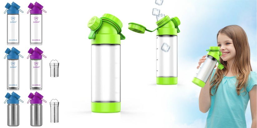 "Geschmäcker sind verschieden, die einen bevorzugen Trinkflaschen aus leichtem Kunststoff, die anderen aus Glas, wiederum andere aus robustem Edelstahl. Aber wohl alle vereint der Wunsch, dass die Flaschen aus hochwertigen und schadstofffreien Materialien hergestellt werden, die gesundheitlich unbedenklich sind. Und dass die Flaschen nicht auslaufen, auch nicht bei Wasser mit Kohlensäure. Und dass sie bequem zu befüllen sind, ohne Hilfsmittel wie Trichter, und idealerweise durch die Kinder selbst in der Schule nachgefüllt werden können, auch unter kleinen Wasserhähnen. Und dass sie auch für verderbliche Getränke wie Schorle oder Tee geeignet sind, ohne dass die Gefahr der Schimmelbildung in nicht einsehbaren und schlecht reinigbaren Bereichen des Verschlusses besteht. Und dass die Kinder leicht daraus trinken können, ohne sich zu bekleckern. Und dass keine Deckel beim Trinken verloren gehen können. Und dass die Flasche nach Gebrauch einfach in den Geschirrspüler darf. Eine Flasche mit allen diesen tollen Eigenschaften gab es bisher nicht am Markt. Als Vater zweier Töchter fühlte ich mich motiviert, hier eine tolle Lösung zu finden und habe JuNiki´s Double Neck, die Flasche mit kleiner Trinköffnung und großer Nachfüllöffnung konzipiert und zum Patent angemeldet. Der große Vorteil der Flasche besteht aus dem einzigartigen Verschluss, der im Prinzip mit Flaschenkörpern verschiedener Materialien kombiniert werden kann. Jedes Material hat hier seinen eigenen Vorteil. Was liegt also näher, als allen Eltern und Kindern die Flasche aus dem Material ihrer Wahl anzubieten?"