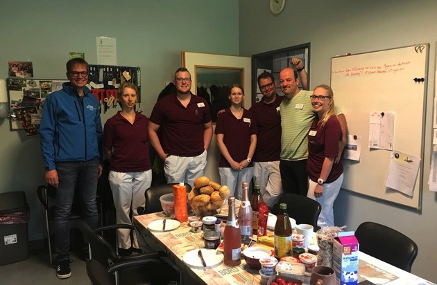 (Hannover) Zum Tag der Pflegenden am 12. Mai 2018 hat der Deutsche Berufsverband für Pflegeberufe (DBfK) Nordwest e.V. 15 Frühstückskörbe an Pflegeteams in Krankenhäusern, stationären Altenpflegeeinrichtungen und ambulanten Diensten als Zeichen der Anerkennung und Wertschätzung überreicht. Unter anderem in Burgdorf, Herne, Wilhelmshaven, Lübeck, Bonn, Meine und Bremen waren Ehrenamtliche des Verbandes unterwegs, um die Körbe an die Gewinnerinnen und Gewinner zu übergeben.