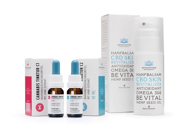 Cannabis sativa wird seit langem als Heilpflanze zur Unterstützung des gesundheitlichen Wohlbefindens eingesetzt. Der Fokus der Medropharm-Produkte liegt auf dem Bestandteil CBD und dessen gesundheitsfördernden Effekten. Die beiden Tinkturen Cannabis C1 5,25 Prozent und C2 5,35 Prozent sind nicht-psychoaktiv, der Anteil des psychoaktiven THC liegt unter 0,2 Prozent. Die Tinkturen sind als Nahrungsergänzungsmittel freiverkäuflich. Der Hanfbalsam, CBD Skin Revitalizer, ist ein Kosmetikprodukt zur Pflege und zur Stärkung der Regenerationsfähigkeit der Haut.