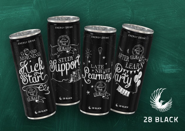 In einem Kreativwettbewerb der 28 BLACK Lead-Agentur zweipunktnull sind vier verschiedene Designs im Hand-Lettering- und Chalkboard-Look zum Thema Studentenleben entstanden. Good Morning Kick Start, Study Support, Late Night Learning und After Learn Party - so lauten die Statements, die jedem Studenten nur allzu vertraut sind und die auf den vier Dosen 28 BLACK Açaí des Study Survival Packs zu finden sind. Erhältlich sind die limitierten 4-Packs exklusiv im 28 BLACK Online Shop unter www.28black.de, solange der Vorrat reicht.