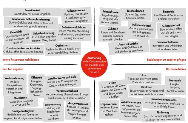 1. Das Team führen 2. Beziehungen zu anderen pflegen 3. Den Ton angeben 4. Innere Ressourcen mobilisieren