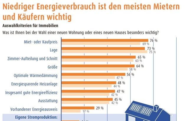 Immobilien-Umfrage: Niedriger Energieverbrauch ist den meisten Mietern und Käufern wichtig