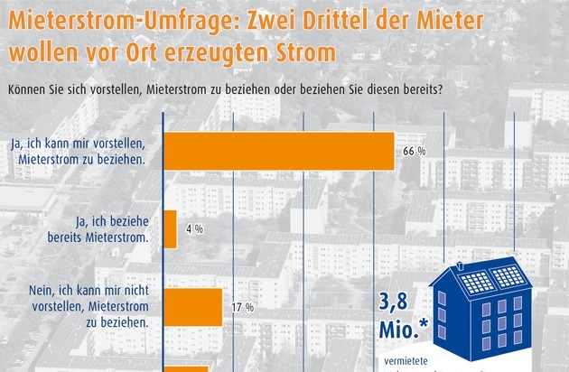 Eine Grafik mit den wichtigsten Umfrageergebnissen sowie Fotos zu Mieterstrom-Projekten finden Sie auf unserer Medienseite http://bit.ly/Pressemeldung_Mieterstrom-Umfrage zum Download.