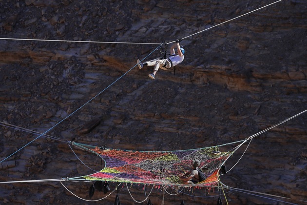 Springt er? Oder springt er nicht? Raúl Richter hängt in 50 Metern Höhe oberhalb des Fish River Canyons in Namibia an einem ein Zentimeter dicken Seil. Für "Spidernet Boule" soll er sich durch den zweitgrößten Canyon der Welt schwingen. Bei dem Schauspieler liegen die Nerven blank: "Ich muss versuchen, diese fürchterliche Angst, die ich bei diesem Spiel empfinde, auszublenden." In der neuen Reality-Game-Show "Global Gladiators" kommt er genauso wie Comedian Oliver Pocher, Model Larissa Marolt, Sänger Pietro Lombardi, Model Lilly Becker, Fußball-Weltmeisterin Nadine Angerer, Fußball-Legende Ulf Kirsten und Model Mario Galla immer wieder an seine Grenzen - ab Donnerstag, 1. Juni 2017, um 20:15 Uhr auf ProSieben.
