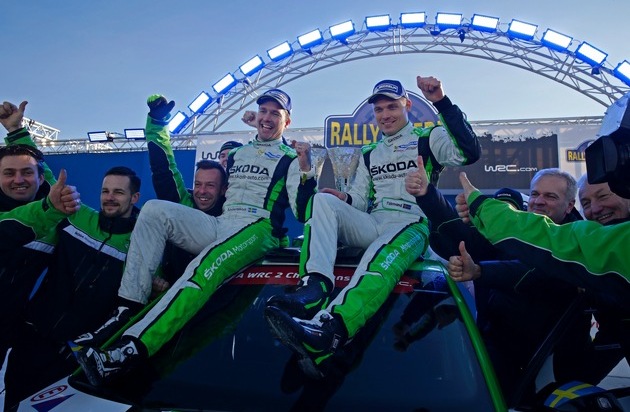 Pontus Tidemand entschied im SKODA FABIA R5 zehn der 17 gezeiteten Wertungsprüfungen für sich und gewann die Rallye Schweden mit 51,8 Sekunden Vorsprung auf den Finnen Teemu Suninen. Platz drei ging nach starker Vorstellung an Ole Christian Veiby (N) im SKODA FABIA R5 eines Privatteams. "Phantastisch: Das ist der bisherige Höhepunkt meiner Karriere. Mit meinem ersten Heimsieg bei der Rallye Schweden in der WRC 2 geht ein Traum in Erfüllung. Im vergangenen Jahr haben wir den Sieg mit einem hauchdünnen Rückstand von 14,7 Sekunden verpasst, deshalb schmeckt dieser Erfolg jetzt umso süßer", erklärte Tidemand.