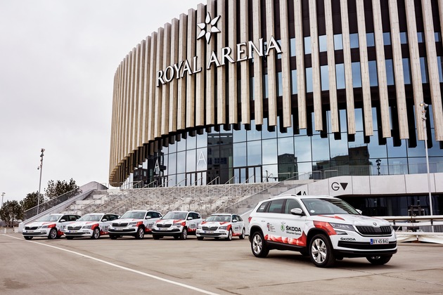 Das SKODA Logo ist bei der IIHF Eishockey-WM deutlich sichtbar vertreten: So ziert es beispielsweise die Banden und die Bullykreise der Spielstätten in der dänischen Hauptstadt Kopenhagen und dem circa 250 Kilometer entfernten Herning. Zudem platziert die tschechische Traditionsmarke drei Modell-Highlights - OCTAVIA COMBI RS, SUPERB und KAROQ - prominent neben der Eisfläche.