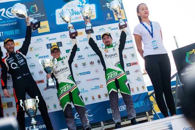 - Fabian Kreim: "Ein traumhaftes Ergebnis"Jubel auf Gran Canaria: Die deutschen Rallye-Meister Fabian Kreim/Frank Christian (D/D) feiern ihren ersten gemeinsamen Podestplatz in der FIA Rallye-Europameisterschaft (ERC). Mit Platz zwei in der U28-Kategorie der ,Rally Islas Canarias' springt SKODA AUTO Deutschland Pilot Kreim zudem an die Spitze der EM-Gesamtwertung in seiner Klasse. Den perfekten Auftritt der Marke SKODA auf der Atlantikinsel rundet der Russe Nikolay Gryazin mit seinem Triumph vor Kreim ab: Damit machen die FABIA R5 Piloten einen U28-Doppelsieg beim zweiten EM-Saisonlauf perfekt.
