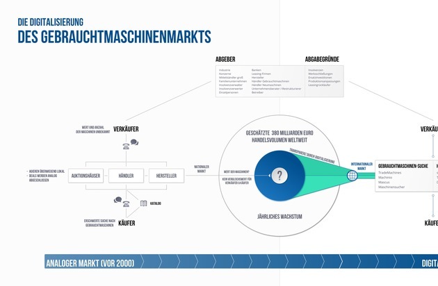 Vor dem Internet war der Gebrauchtmaschinenmarkt intransparent. Der Verkäufer bzw. Abgeber wusste nicht, wie viel seine Maschine tatsächlich wert ist, weil er nicht wusste, wie viele Maschinen dieses Typs auf dem Markt waren. Genau so ging es dem Käufer, er hatte keinen Vergleichswert. Dazu war die Suche nach der richtigen Maschine sehr zeitaufwändig. Besonders hervorzuheben ist die Preisermittlung der verfügbaren Gebrauchtmaschinen mittels Online-Auktionen. Sie war der wichtigste Hebel für das Wachstum des Online Gebrauchtmaschinenhandels.