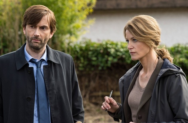 Originaltitel: "Gracepoint", 1. Staffel, 10 Episoden, je ca. 60 Minuten, USA 2014. Regie: u.a. James Strong, Euros Lyn, David Petrarca. Serienschöpfer: Chris Chibnall. Darsteller: David Tennant, Anna Gunn, Josh Hamilton, Nick Nolte, Jack Irvine, Michael Peña, Virginia Kull, Madalyn Horcher, Jacki Weaver.