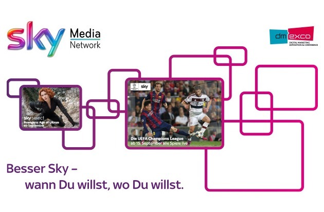 positionieren."Unterföhring, 10. September 2015 - Sky Media Network, führender Pay-TV-Vermarkter in Deutschland, präsentiert auf der diesjährigen dmexco neue Vermarktungsansätze. Unter dem Motto "Besser Sky -wann Du willst, wo Du willst" stellt der Vermarkter am 16. und 17. September in Halle 8, Stand B011 C010, sein umfassendes Multiscreen-Portfolio vor.