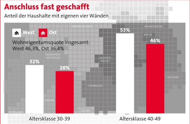 Wohneigentumsquote bei den 30- bis 50-jährigen Ostdeutschen fast auf Westniveau - Enormer Aufholprozess