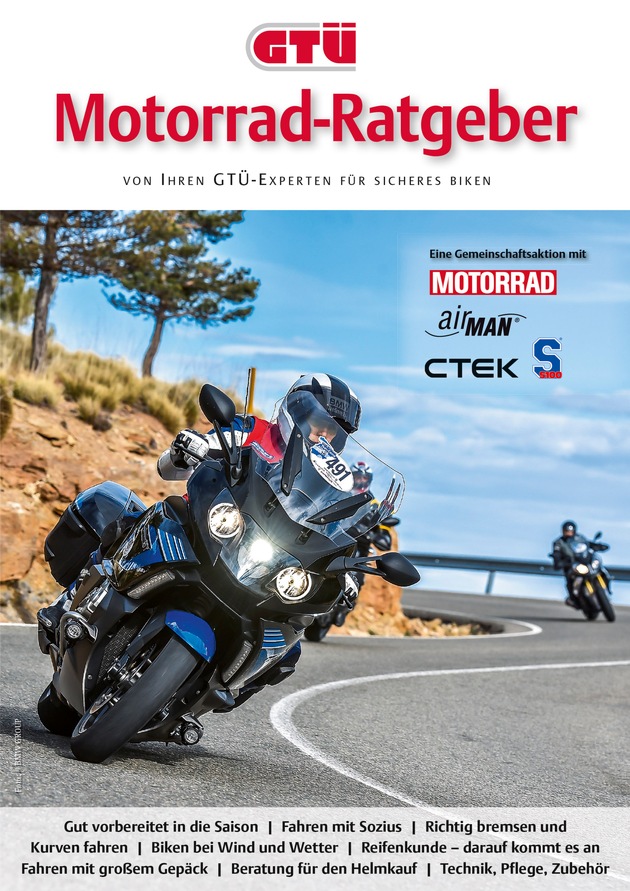 Kostenlos bestellt werden kann der praktische Motorradratgeber per E-Mail unter vertrieb@gtue.de, Stichwort "Motorradratgeber". Erhältlich ist das neue Bike-Special auch bei teilnehmenden GTÜ-Partnern vor Ort. Zudem steht der praktische Ratgeber unter www.gtue.de/motorradratgeber zum Blättern bereit.