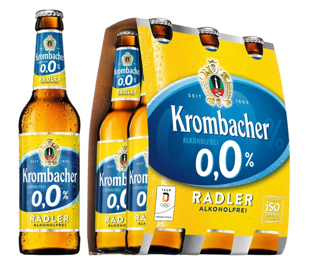 Mit dem 2017 eingeführten Krombacher o,0% als Pils und Weizen wurden neue Verbraucher und Martktanteile gewonnen, neue Kaufimpulse gesetzt und durch den eigenständigen Auftritt in Produktausstattung und Kommunikation für weitere Dynamik im alkoholfreien Segment gesorgt. Mit der ditten Sorte setzt Krombacher o,0% nun die Erfolgsstory fort: Ab sofort gibt es Krombacher o,0% Radler als natürlichen Durstlöscher im 11x0,5 l Kasten sowie 6er Pack. Die isotonische Radler-Erfrischung mit o,0% Alkohol überzeugt mit der Mischung aus 40% Krombacher o,0% Pils und 60% Zitronenlimonade - für einen natürlich erfrischend und fruchtig-spritzigen Geschmack. Eine Ausdehnung der kommunikativen Maßnahmen, Einzelflaschensampling sowie themenspezifische Verlosungen, u. a. mit Markenbotschafter Joey Kelly und dem Radsportteam BORA hansgrohe sorgen für weiteren Rücken- und Aufwind.