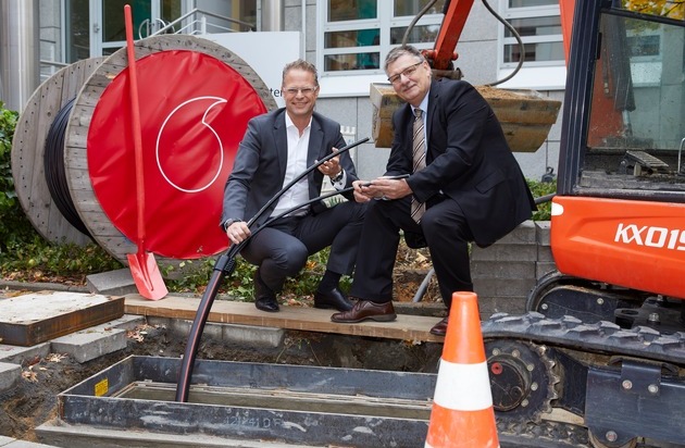 In seiner Heimatstadt Düsseldorf hat Vodafone die Bagger losgeschickt und mit dem Glasfaserausbau für zahlreiche Gewerbegebiete begonnen. Den Startschuss gaben Alexander Saul, Firmenkundenchef Vodafone Deutschland und Rainer Dzaack, Chef der Pape+Rohde Büroeinrichtunge, dem ersten Gigabit Kunden: Dieses Unternehmen gehört zu den 5.000 Firmen, die Vodafone vor Ort versorgen will. Der erste Glasfaser-Spatenstich in Düsseldorf ist zugleich Auftakt für Vodafones bundesweite GigaGewerbe-Initiative, mit der das Unternehmen bis 2021 rund 100.000 Firmen in 2.000 Gewerbegebieten an die Glasfaserautobahn bringen will.