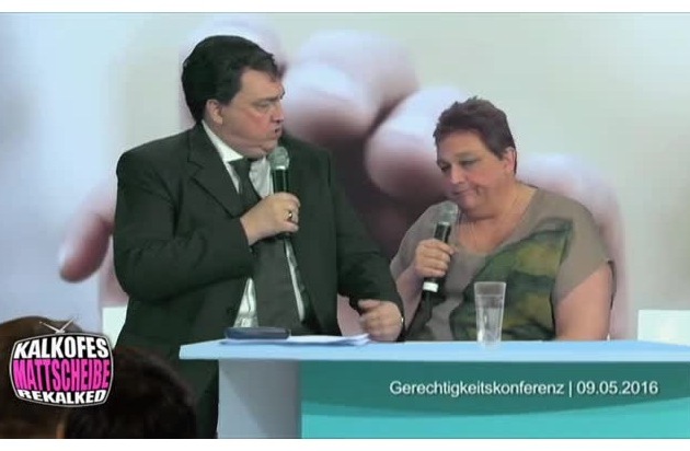 Mai 2016, Gerechtigkeitskonferenz: Reinigungskraft Sabine Neumann findet klare Worte: "Weißte eigentlich was der Unterschied zwischen uns ist? Wir Putzfrauen kriegen wenig Geld für viel ehrliche Arbeit, und wenn wir nach Hause gehen ist es sauberer als vorher. Ihr kriegt die fette Kohle in den Hintern, damit Ihr uns anlügt, und wenn Ihr abhaut, lasst Ihr den Kackhaufen einfach im Zimmer liegen und sagt 'Wir waren das nicht!' Hab ich dat korrekt zusammengefasst?" Ja, Susanne, haste!