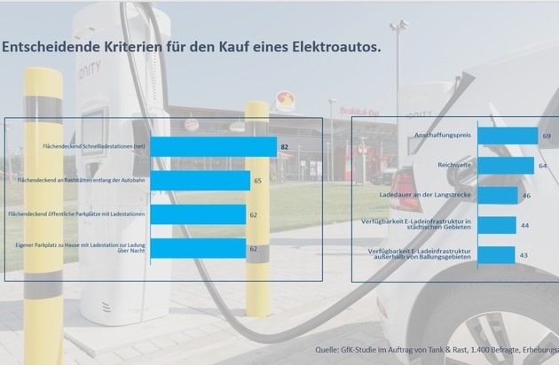 Fahrzeuge mit Elektroantrieb haben weiter an Attraktivität im Markt gewonnen. Zu diesem Ergebnis kommt eine repräsentative Umfrage der Gesellschaft für Konsumforschung (GfK) unter 1.400 Autofahrern, die im Auftrag von Tank & Rast, dem führenden Infrastrukturdienstleister an den deutschen Autobahnen, durchgeführt wurde.