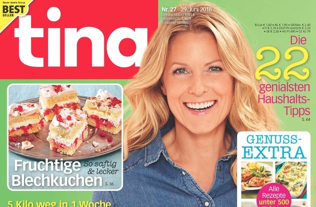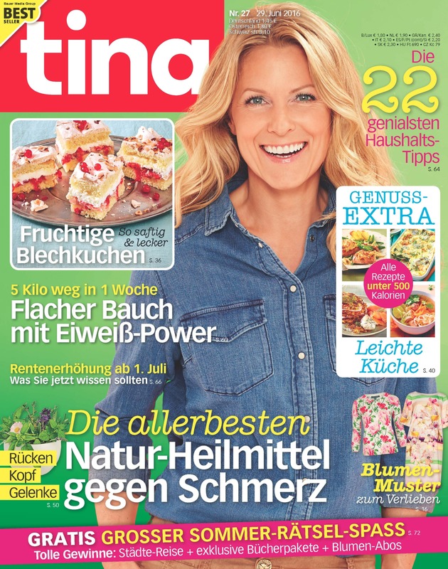 Die neue tina-Ausgabe 27/2016 ist ab dem 29. Juni im Handel erhältlich. Auszüge sind bei Nennung der Quelle "tina" zur Veröffentlichung frei.