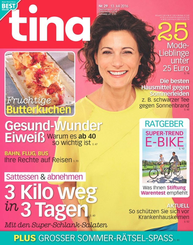 Die neue tina-Ausgabe 29/2016 ist ab dem 13. Juli im Handel erhältlich. Auszüge sind bei Nennung der Quelle "tina" zur Veröffentlichung frei.