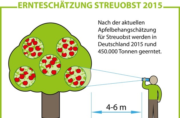 Was aussieht wie das Treffen einer Gruppe von Vogelkundlern ist in Wirklichkeit eine Ernteschätzung. Auf diese Weise werden Äpfel gezählt. Dazu erfassen bundesweit 79 Schätzer im Auftrag des VdF die Menge an Früchten, die innerhalb des Ausschnitts des so genannten "Guckis" zu sehen ist. Entsprechende Hochrechnungen geben dann einen Rückschluss auf die zu erwartende Erntemenge.
