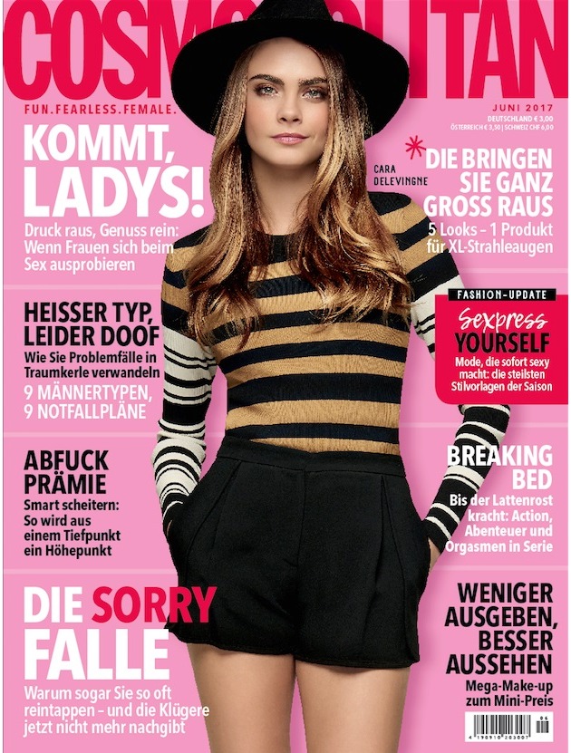 Über COSMOPOLITAN COSMOPOLITAN ist die weltweit bekannteste Premiummarke, erscheint mit 53 Ausgaben in 79 Ländern und ist mit rund 42 Millionen Leserinnen das größte Frauenmagazin der Welt. Auch in Deutschland ist COSMOPOLITAN die reichweitenstärkste monatliche Medienmarke und erreicht 1,55 Millionen Leserinnen. In der werberelevanten Zielgruppe der Frauen von 14 bis 49 Jahren führt COSMOPOLITAN das Segment mit einer Reichweite von 1,33 Millionen Leserinnen an. Mehr als 1,4 Millionen Unique User erreicht die 360-Grad-Brand über die Digital-Kanäle - von der Webseite über Facebook und Instagram bis hin zu Snapchat und WhatsApp. "Fun.Fearless.Female." - Mit diesem redaktionellen USP und Empowerment Leitsatz unterstützt COSMOPOLITAN ihre Leserinnen crossmedial in allen Lebensbereichen: Job & Karriere, Partnerschaft & Erotik sowie Beauty & Fashion! Die cosmopolitische, moderne und selbstbewusste Leserin ist zwischen 20 und 49 Jahre alt, erfolgreich im Job und finanziell unabhängig. COSMOPOLITAN erzielte 2016 einen durchschnittlichen Gesamtverkauf von 247.540 Exemplaren (IVW 1-4 2016).
