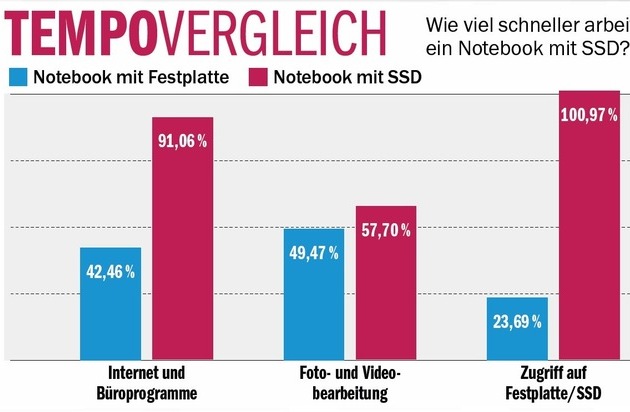 COMPUTER BILD-Test: SSDs mit viermal schnellerem Datenzugriff als Festplatten