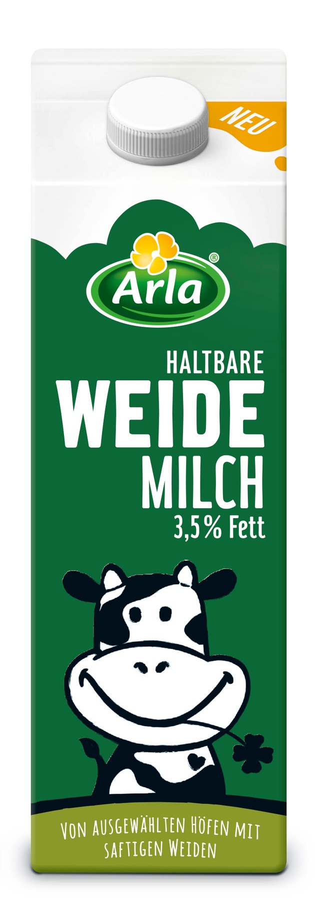 Für viele Konsumenten ist es wichtig, dass sie qualitativ hochwertige Milch für sich und ihre Familie kaufen. Ein wichtiges Kriterium bei der Produktauswahl ist daher häufig auch, dass die Kühe sich frei auf der Weide bewegen können und möglichst viel Grünfutter bekommen. Damit die Wünsche möglichst vieler Verbraucher beim Milcheinkauf erfüllt werden, gibt es jetzt ganz neu Arla® haltbare Weidemilch, die in den Fettstufen 1,5 Prozent und 3,5 Prozent angeboten wird. Sie stammt von Kühen, die im Sommer so oft auf der Weide stehen wie es das Wetter zulässt - mindestens aber sechs Stunden täglich an mindestens 120 Tagen von Mai bis Oktober. Im Winter, sobald die Vegetationszeit endet, werden sie im Stall vor allem mit dem im Sommer getrockneten Heu oder mit siliertem Gras gefüttert. Ihr Futter besteht daher weitestgehend aus Weidegras. In Arla® haltbare Weidemilch steckt also ganz viel Gutes.