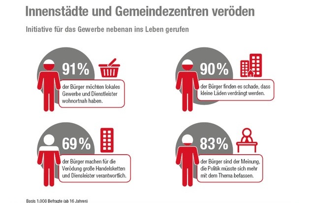 "Die Umfrageergebnisse zeigen, wie brisant das Thema ist. Dieses wird bisher aber hauptsächlich regional diskutiert. Wir haben daher die Initiative für das Gewerbe nebenan ins Leben gerufen, die sich für eine differenzierte Gewerbestruktur in Deutschlands Städten und Gemeinden einsetzt", so Michael Wolf, Geschäftsführer, Das Telefonbuch-Servicegesellschaft. Ziel der Initiative ist es, nationale Aufmerksamkeit für das Thema zu schaffen. Dazu gibt es eine Online-Plattform (www.gewerbe-nebenan.de), die erstmals Experten und regionale Aktionsgruppen/Vereine zu dem Thema zusammenbringt, die sich für das Gewerbe von nebenan stark machen. Zudem wird ein News-Bereich aufgebaut, in dem Experten-Beiträge und Praxisbeispiele von Aktionsgruppen erscheinen sowie lokale Lieblingsläden vorgestellt werden.