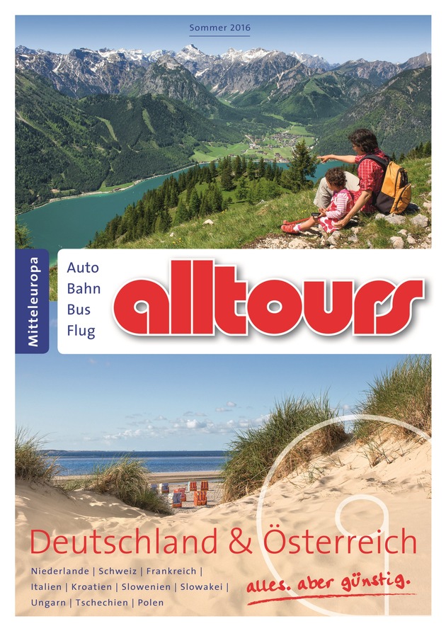 alltours baut sein Programm mit individueller Anreise massiv aus. Im Sommer 2016 bietet alltours mehr als 500 Hotels (Vorjahr 300) in zwölf europäischen Ländern an. 18 Ferienregionen sind erstmalig im alltours Programm. Den Schwerpunkt setzt alltours dabei in Italien. Dort sind eine Reihe von Zielen, wie zum Beispiel Sizilien oder Sardinien, wahlweise auch als Flugpauschalreise mit optionalem Transfer buchbar. Aber auch Deutschland, die polnische Ostseeküste und Frankreich (erstmals inklusive einer Selbstfahrer-Rundreise) wurden zum Teil massiv ausgebaut. Ganz neu ist das Reiseland Slowakei.