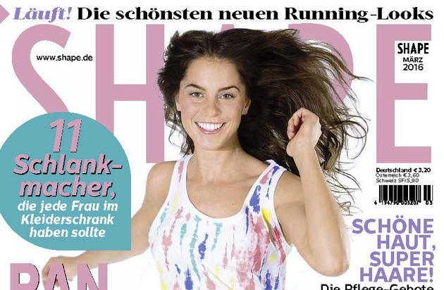 Der Frühlingsanfang naht und mit den steigenden Temperaturen wird es endlich wieder Zeit, die Laufschuhe auszupacken und den Fettpolstern davon zu joggen: SHAPE (3/2016, EVT. 3.2.) präsentiert in der aktuellen Ausgabe 44 Tricks, die unerwünschte Kilos schneller purzeln lassen und den Weg zum Idealgewicht ebnen - vom Ausdauersport und Krafttraining bis zu schmackhaften Schlankmachern.
