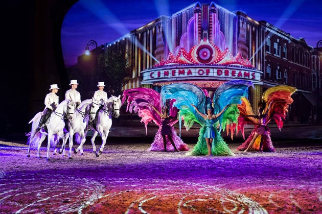 Mehr denn je überzeugt die neue APASSIONATA-Show "Cinema of Dreams" als ein unvergessliches Gesamtkunstwerk: Die einmaligen Hintergrundbilder von Pixomondo, dem preisgekrönten Animationsstudio aus Stuttgart, erschaffen unglaubliche Fantasiewelten. Ebenso wie die beeindruckenden Licht- und Soundeffekte oder die liebevoll gestalteten Kostüme und Requisiten sind sie perfekt abgestimmt auf die kleinsten Bewegungen in der Reitbahn und laden von der ersten Sekunde an zum Träumen ein.