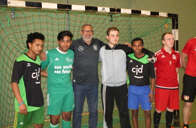 Zum internationalen Fußballturnier kommen junge Flüchtlinge und Jimmy Hartwig