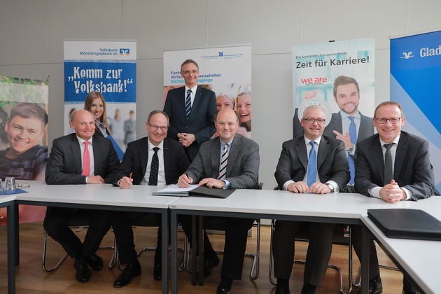 Die Hochschule Niederrhein gestaltet gemeinsam mit der Santander Consumer Bank und drei weiteren Finanzinstituten den neuen dualen Studiengang Banking & Finance. Eine entsprechende Kooperationsvereinbarung unterzeichneten die Partner jetzt in Mönchengladbach.