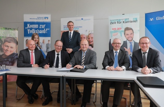 Die Hochschule Niederrhein gestaltet gemeinsam mit der Santander Consumer Bank und drei weiteren Finanzinstituten den neuen dualen Studiengang Banking & Finance. Eine entsprechende Kooperationsvereinbarung unterzeichneten die Partner jetzt in Mönchengladbach.