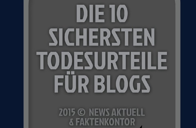 Ausschließlich um sich selbst kreisen, Suchmaschinen ignorieren und Kommentare konsequent unbeantwortet lassen - diese und andere Fehler führen dazu, dass Unternehmensblogs nicht den gewünschten Erfolg erzielen. Unter dem Titel "Die 10 sichersten Todesurteile für Blogs" haben die dpa-Tochter news aktuell und Faktenkontor jetzt eine gemeinsame Infografik über die größten Fehler beim Bloggen veröffentlicht.
