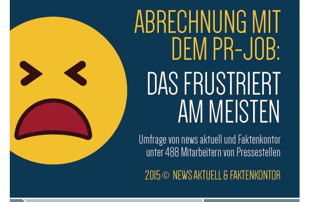 Wie soll ich das bloß alles schaffen? In der vorgegebenen Zeit und mit den vorhandenen Ressourcen? Zu viele Aufgaben für zu wenig Mitarbeiter: Das ist mit Abstand der größte Frust-Faktor in deutschen Pressestellen. Die dpa-Tochter news aktuell und Faktenkontor veranschaulichen in einer neuen Infografik die häufigsten Ursachen für Unzufriedenheit im PR-Job. Mehr als 480 Mitarbeiterinnen und Mitarbeiter von Pressestellen haben an der Umfrage teilgenommen.