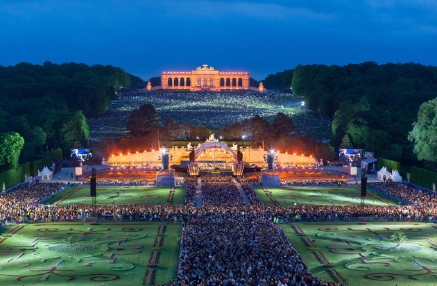 Zum Sommernachtskonzert in den Schlosspark Schönbrunn laden die Wiener Philharmoniker bereits zum 25. Mal ein. Mit seinem hochkarätigen Programm und freiem Eintritt zieht das Open-Air-Spektakel jedes Jahr mehr Besucher an. Unter der Leitung von Christoph Eschenbach spielen die Philharmoniker Werke von Antonin Dvorák, Peter Tschaikowsky, Sergej Rachmaninoff, Engelbert Humperdinck, John Williams und Igor Stravinsky. Star des Abends ist in diesem Jahr die amerikanische Sopranistin Renée Fleming.