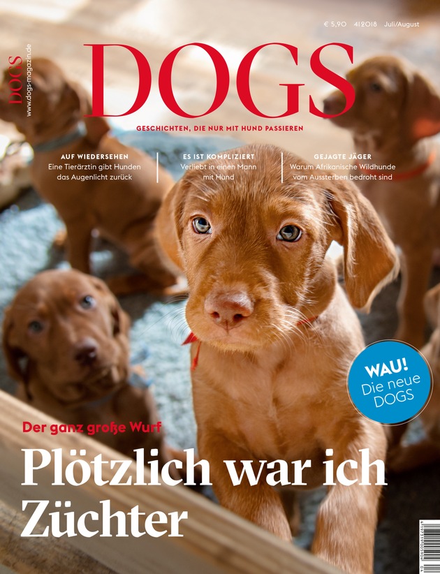 Emotionaler, positiver, lebensnäher: Mit der aktuellen Ausgabe (EVT 16.07.2018) präsentiert sich Europas größtes Hundemagazin DOGS optisch erneuert und mit inhaltlich neuer Ausrichtung. Im Mittelpunkt stehen künftig noch mehr große Geschichten über Menschen und ihre Hunde - vermittelt über packende Reportagen und ausdrucksstarke Bildstrecken.
