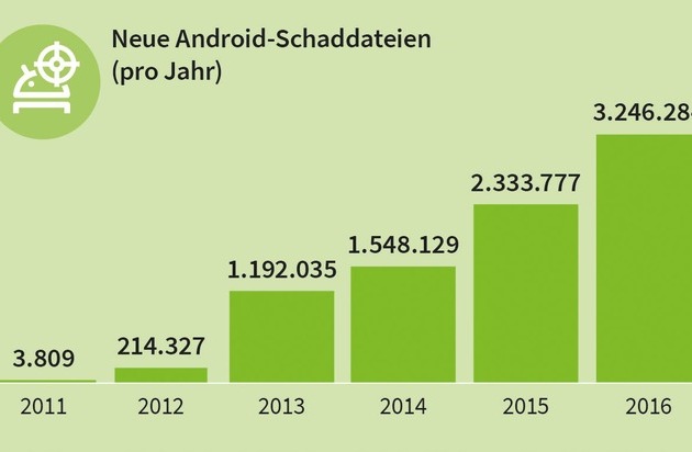 Mit einem Smartphone oder Tablet gehen rund die Hälfte der Menschen online (Quelle: Bitkom). Das Android-Betriebssystem ist bei Mobilgeräten am stärksten verbreitet und daher ein beliebtes Angriffsziel für Cyberkriminelle. Mit 3.246.284 neuer Android-Schaddateien im Jahr 2016 haben die G DATA Sicherheitsexperten erneut einen Negativ-Rekord verzeichnet. Zum Vorjahr stieg der Wert um fast 40 Prozent. Über die aktuelle Bedrohungslage und Lösungen informieren die G DATA Sicherheitsexperten auf dem Mobile World Congress in Barcelona vom 27. Februar bis 2. März 2017, Halle 6 Stand 6B40.