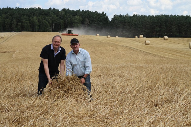 (DBV) "Die deutschen Bauern blicken zuversichtlich auf die in diesen Tagen beginnende Getreideernte. Ein im Vergleich zu den Vorjahren in weiten Teilen günstigerer Witterungsverlauf hat eine gut durchschnittliche Getreideernte heranwachsen lassen", sagte der Präsident des Deutschen Bauernverbandes (DBV), Joachim Rukwied, bei einem Pressegespräch anlässlich des Beginns der Getreideernte. "Die wirtschaftliche Situation der Ackerbaubetriebe ist wegen der niedrigen Preise für Getreide und Raps jedoch angespannt. Zudem gibt es regional Ernteschäden durch Unwetter, Starkregen oder Hagel. Derzeit sind bundesweit fast 200.000 Hektar davon betroffen, rund dreimal soviel wie in anderen Jahren", hob Rukwied hervor. Gemeinsam mit dem Präsidenten des Landesbauernverbandes Brandenburg, Henrik Wendorff, stellte Bauernpräsident Rukwied im brandenburgischem Niemegk (südlicher Landkreis Potsdam-Mittelmark) die Erwartungen der deutschen Bauern an die diesjährige Getreide- und Rapsernte sowie aktuelle Marktentwicklungen vor.