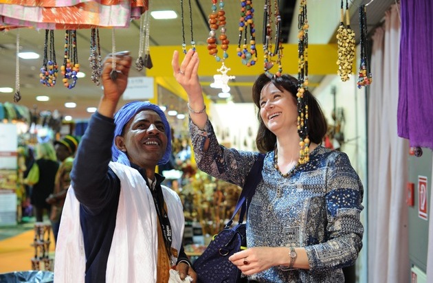 Zu einer exotischen Shoppingmeile wie dem Bazaar Berlin gehört der Spaß am Schauen, Staunen und Kaufen. Doch immer mehr Besucherinnen und Besucher wollen zugleich wissen, woher die Produkte kommen und unter welchen Bedingungen sie hergestellt und gehandelt wurden. Diesen Trend hat der am Sonntag beendete Bazaar Berlin 2015 eindrucksvoll bestätigt. So lag der Fair Trade Market der Verkaufsausstellung beim Besucherinteresse erneut auf dem zweiten Platz. Die Themen Fairer Handel und soziale Verantwortung standen außerdem im Fokus von Podiumsdiskussionen, Schülerprogramm und weiteren Veranstaltungen.