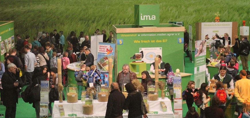 Gesunde Ernährung, die Herkunft unserer Nahrungsmittel sowie deren Wertschöpfungsketten sind Themen, mit denen sich der i.m.a - information.medien.agrar e.V. schon immer befasst hat. Zur Internationalen Grünen Woche stehen sie nun auch im Mittelpunkt der Gemeinschaftsschau vom "ErlebnisBauernhof", bei dem sich der i.m.a e.V. mit Partnern wie dem Deutschen Bäckerhandwerk und dem "Bäckman"-Backbus präsentiert. Auch dort ist Mitmachen angesagt: Vormittags können Schüler Brot backen und an den Wissensstationen ihr Lieblingsfrühstück zusammenstellen, nachmittags und an den Wochenenden wird Besuchern die Erzeugung und Verarbeitung unserer Nahrungsmittel erläutert. Auch dabei wird zum Ausprobieren und Experimentieren eingeladen.