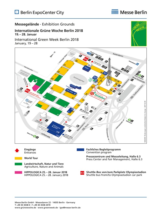 Hallenbelegung für die Internationale Grüne Woche Berlin 2018