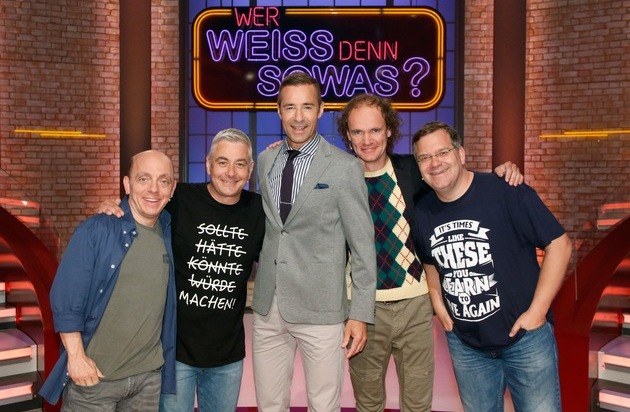 Das Erste: "Wer weiß denn sowas?" Das Wissensspiel mit den Teamchefs Bernhard Hoëcker und Elton, moderiert von Kai Pflaume, vom 31. Juli bis 4. August 2017, um 18:00 Uhr im Ersten