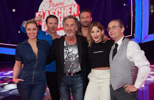 Gastgeber Hugo Egon Balder lädt in SAT.1 fünf Prominente zu einer amüsanten Zeitreise in ihre Jugend ein: In "Das große Promi Flaschendrehen", am Freitag, 25. Mai 2018, um 20:15 Uhr, drehen Ruth Moschner, Jeannine Michaelsen, Wigald Boning, Sasha und Stefan Mross die Flasche. Dabei stellen sie sich verrückten Aufgaben und beantworten pikante Fragen - ganz wie früher.